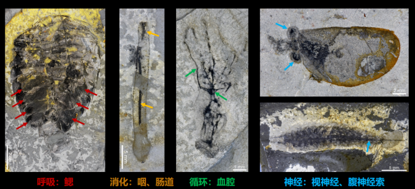 科研人员发现这里不仅保存了完整动物个体,还保存许多全身软躯体的动物,很多化石上能清晰看到肠道等消化系统、以鳃为代表的呼吸器官,甚至还有视神经组织那样的精细结构,这为复原早期动物的身体结构提供了宝贵证据。