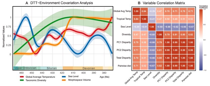 环境指标与无洞贝宏演化动态的协变模式(图片来源:南京古生物所)
