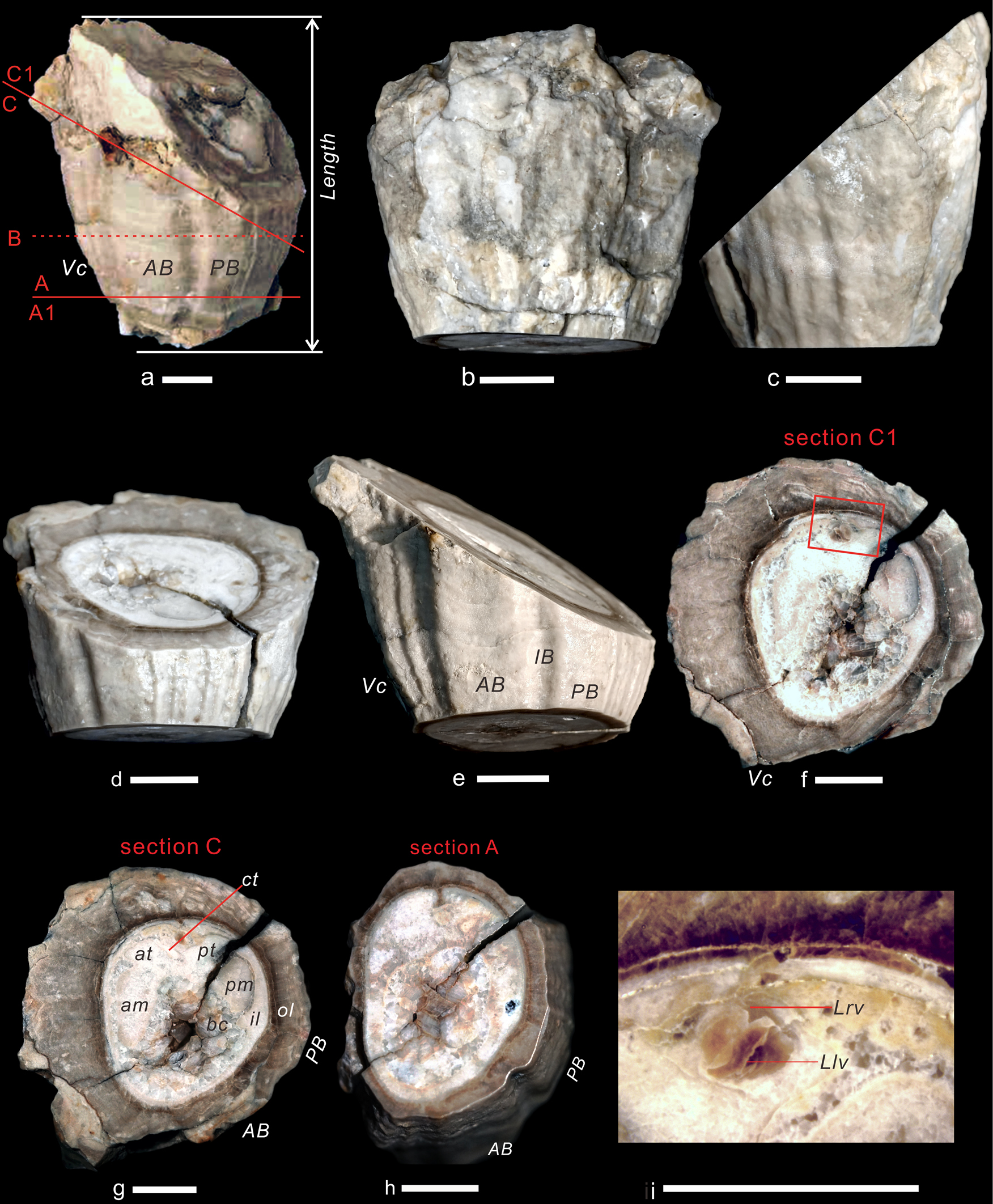 研究人员从尼玛县中仓地区郎山组灰岩中采集到保存完好的 Agriopleura libanica 右壳标本,以及与其共生的 Offneria murgensis 化石。通过系统的形态学与比较解剖学研究,发现该物种在韧带结构、铰齿和肌痕特征上与亚洲特有属——阿普特期晚期(Late Aptian)至阿尔布期(Albian)Auroradiolites高度相似,从而为“Auroradiolites直接起源于Ag. libanica”的假说提供了有力证据。