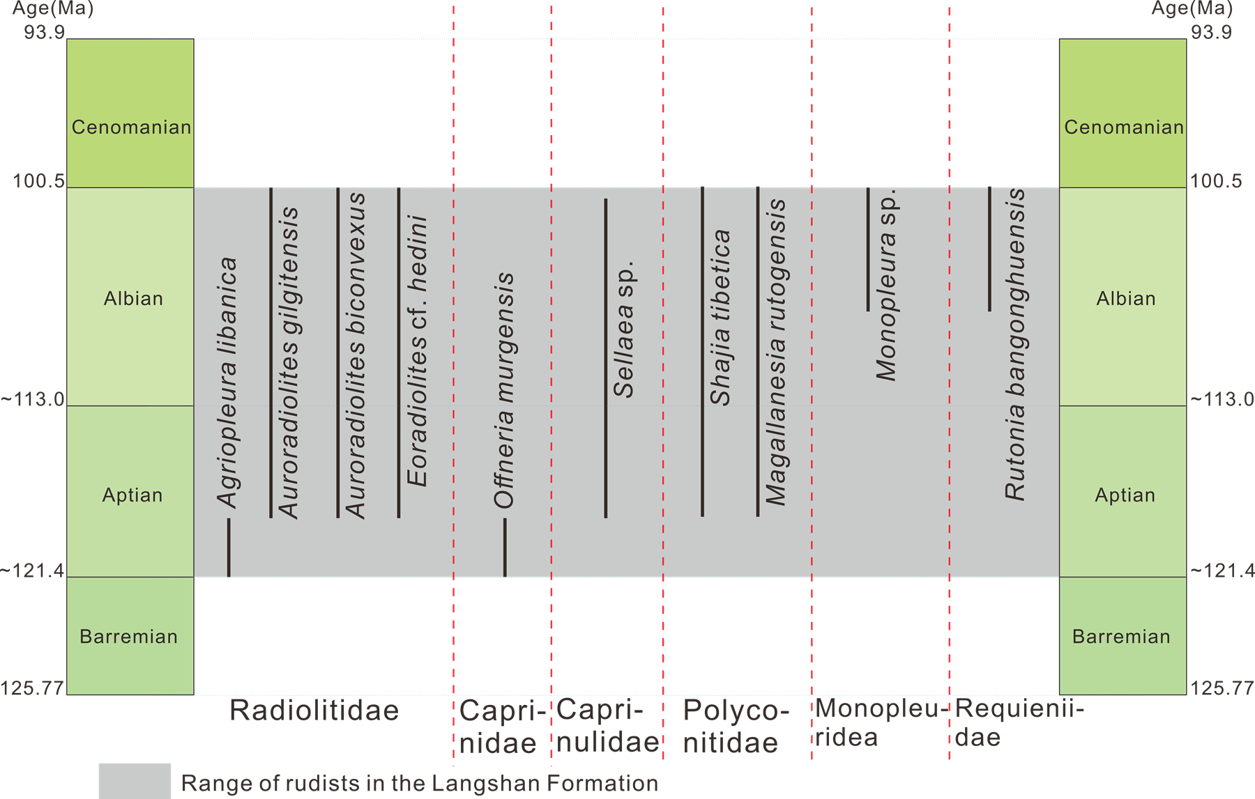 固着蛤是一类已灭绝的浅海相双壳类,在晚侏罗世至白垩纪繁盛于热带—亚热带浅海碳酸盐台地。因演化迅速、分布广泛,固着蛤成为白垩纪生物地层对比和古环境重建的重要化石类群。青藏高原北拉萨地体广泛分布的郎山组,其沉积时代长期被认为限于阿普特期晚期(Late Aptian)至赛诺曼期早期(Early Cenomanian),而阿普特期早期(Early Aptian)的沉积与化石证据极为匮乏。