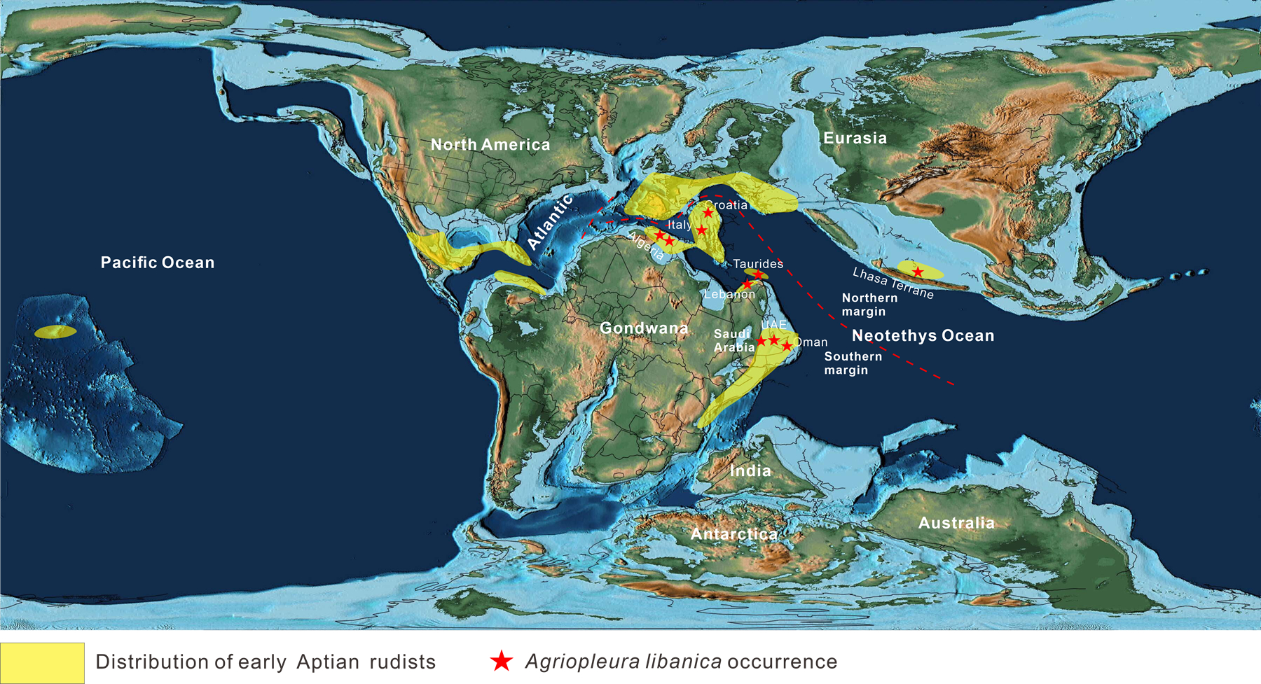 阿普特期早期Agriopleura libanica (Astre)的生物古地理分布