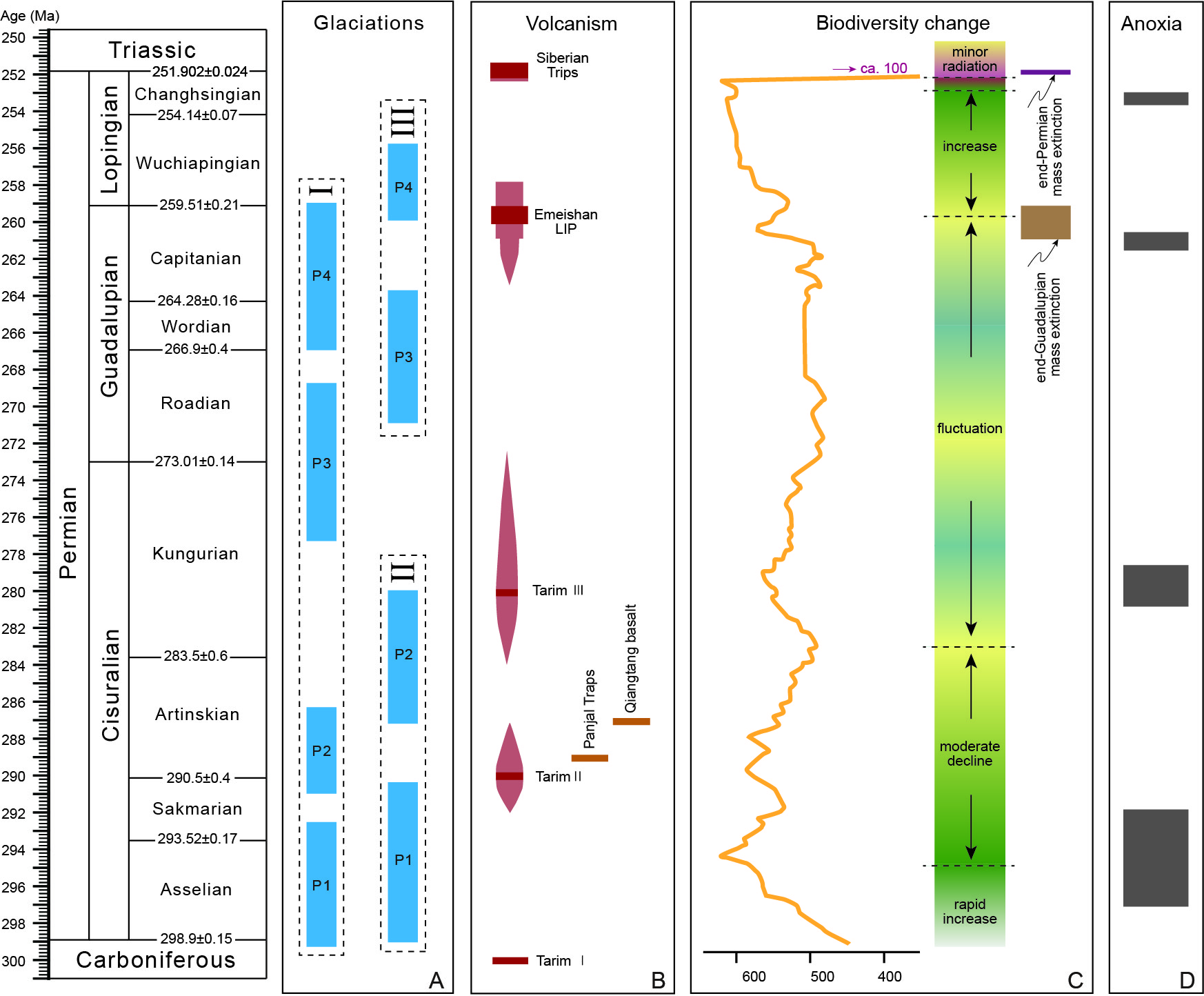 晚古生代冰期是显生宙持续时间最长的冰室气候,其向温室气候的转变是地球气候演化的一个关键转折点。瓜德鲁普世-乐平世(中-晚二叠世)之交作为晚古生代冰期的最终阶段,记录了冰川消融和全球碳循环扰动的重要证据。尽管峨眉山大火成岩省被认为是可能的触发因素,但火山活动与冰川消融之间的具体关联机制尚未明确。