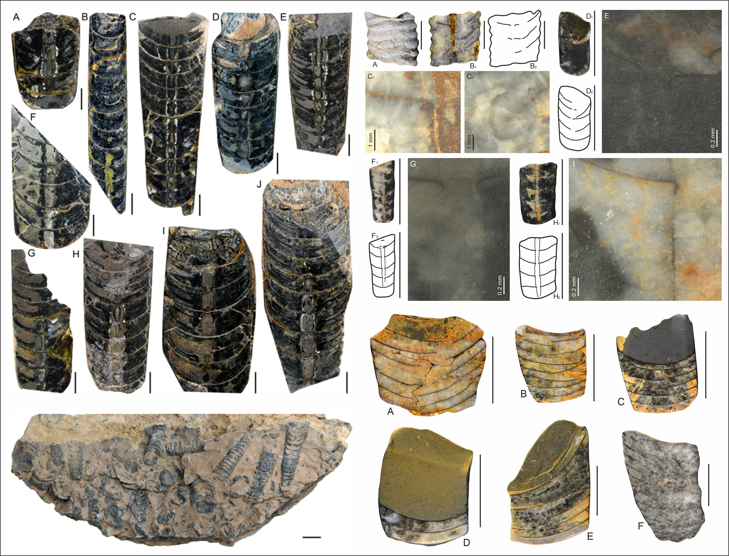 Ⅰ. 基于产自摩洛哥小阿特拉斯山脉和祁连山脉的头足类化石新材料,报道了更多晚奥陶世凯迪中期的头足类属种,包括Tafadnatoceras elfechtense, Paradnatoceras nyalamense, Isorthoceras sp., Anaspyroceras sp., Geisonocerina? sp.等, 丰富了凯迪中期头足类的生物面貌与组成。