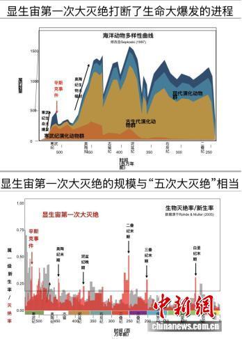 研究团队对显生宙第一次生物大灭绝事件进行科普解读的相关示意图。中国科学院南京古生物所 供图