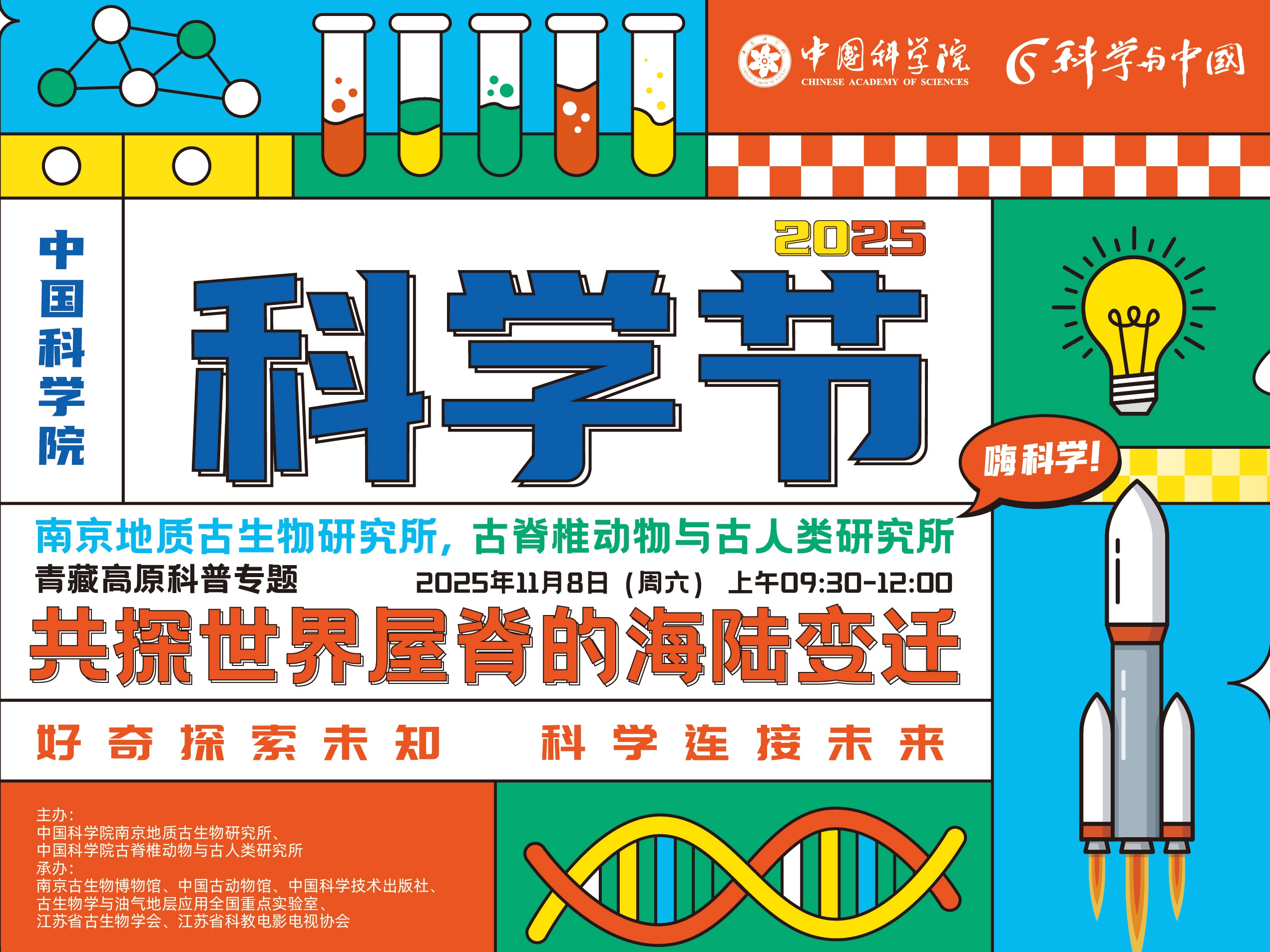为迎接中国科学院第八届科学节,响应《中华人民共和国科学技术普及法》,中国科学院南京地质古生物研究所与中国科学院古脊椎动物与古人类研究所携手,于2025年11月8日联合举办“共探世界屋脊的海陆变迁”科普专题主场活动。本次活动紧扣科学节“嗨,科学!--好奇探索未知,科学连接未来”主题,通过品牌讲座、科普特展与校园联动的多元形式,集中展示青藏高原从海洋到陆地的壮阔演化历程,为公众呈现一场科学与文化交融的科普盛宴。为迎接中国科学院第八届科学节,响应《中华人民共和国科学技术普及法》,中国科学院南京地质古生物研究所与中国科学院古脊椎动物与古人类研究所携手,于2025年11月8日联合举办“共探世界屋脊的海陆变迁”科普专题主场活动。本次活动紧扣科学节“嗨,科学!--好奇探索未知,科学连接未来”主题,通过品牌讲座、科普特展与校园联动的多元形式,集中展示青藏高原从海洋到陆地的壮阔演化历程,为公众呈现一场科学与文化交融的科普盛宴。恰逢中国科学院学部成立70周年,本次科学节具有重要纪念意义。此次南京主场活动由两所古生物研究所共同主办,南京古生物博物馆、中国科学技术出版社、古生物学与油气地层应用全国重点实验室、江苏省古生物学会、江苏省教科电影电视协会共同承办。主场活动于11月8日上午在南京古生物博物馆报告厅拉开帷幕。南京古生物所所长王军为活动致辞,古脊椎所党委书记、副所长刘俊,中国科学技术出版社科学大观园编辑部副主任、《山海折叠》责任编辑鞠强,南京古生物所科学传播中心主任、南京古生物博物馆馆长曹长群等领导和嘉宾出席本次活动。活动以“书香南古”第3期率先开启,随后中国科学技术出版社推出科普新作《山海折叠》。紧接着,古脊椎所研究员、《山海折叠》作者吴飞翔带来《西藏天路上的化石宝贝》专题讲座,分享青藏高原科考的精彩故事;南京古生物所研究员张以春在新版“达尔文大讲堂”上主讲《世界屋脊上的远古生物:高原演化的见证者》,带领听众探寻高原隆升与生命演化的奥秘。此外,科普特展《山海折叠:青藏高原的生命史诗》,在南京古生物博物馆一楼恐龙天地科普走廊展出(展期将持续至12月30日),通过图文与实物标本,生动再现青藏高原从海洋到陆地的壮阔地质变迁。科学节期间,南京古生物所还特别策划了为期一个月的“科学筑梦师”专场活动,涵盖中西部(陕西、山西、云南)和南京地区多个场次,将前沿科研知识送进祖国各处的校园,激发青少年对地球科学的兴趣。其中,中西部由南京古生物所副研究员周卫明和研究员蔡晨阳带队,南京场则由两所古生物研究所的科学家共同组成。讲师团先后走进多所中小学,开展系列科普讲座。双古联动不仅是科普形式的创新实践,更让青藏高原的演化故事成为地球科学的“活教材”。此次活动架起了科研单位与公众沟通的桥梁,既弘扬了科学精神,又启迪了大众对未知世界的探索。本次主场活动还通过“科普江苏”央视频平台进行了全程直播。